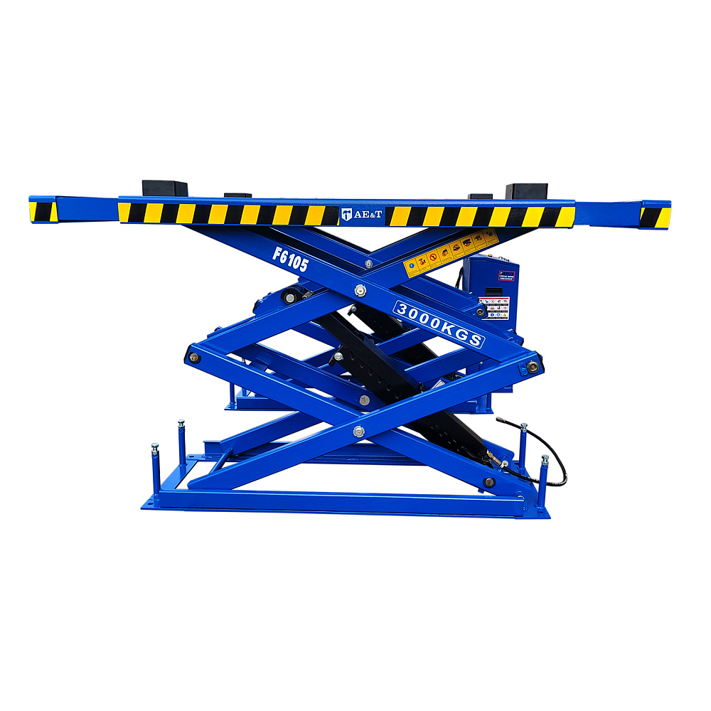 Ножничный подъемник F6105 с креплением «в пол» предназначен для подъема и удержания в поднятом состоянии любых автомашин, весом до 3 000 кг. Особенно удобна эта модель при монтаже шин и профилактических работах на шасси автомобиля.
