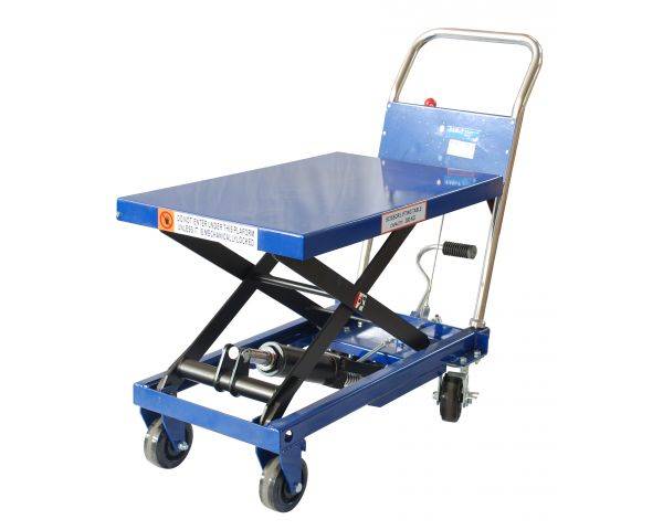 Тележка сделана из долговечных и прочных материалов, очень проста в эксплуатации. Для того, чтобы поднять платформу, достаточно несколько раз нажать на педаль. Опускание механизма регулируется положением рукоятки, просто плавно и медленно потяните за нее.