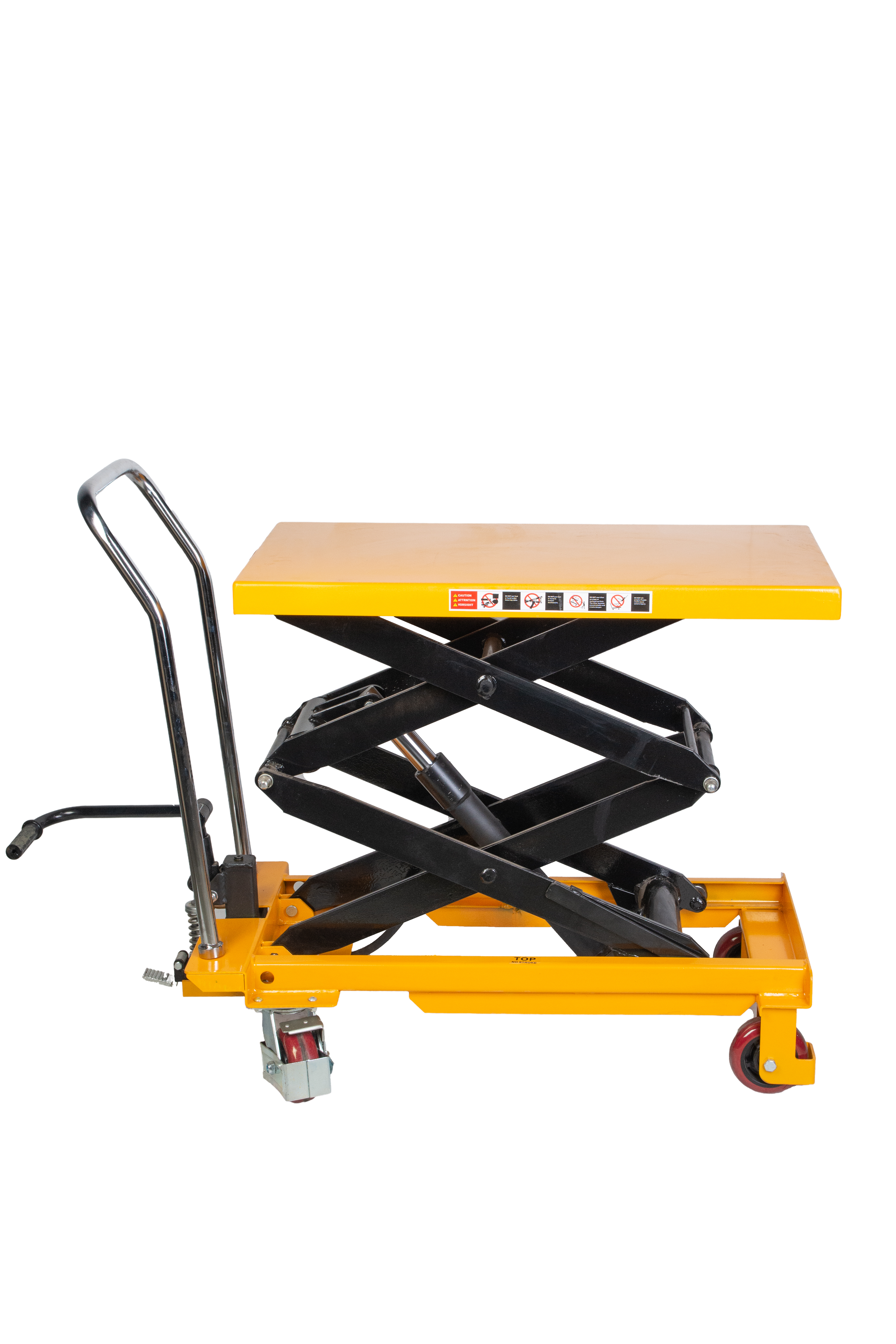 - Двойной ножничный механизм позволяет поднимать грузы на высоту 1500мм, сохраняя высоту подхвата 360мм
