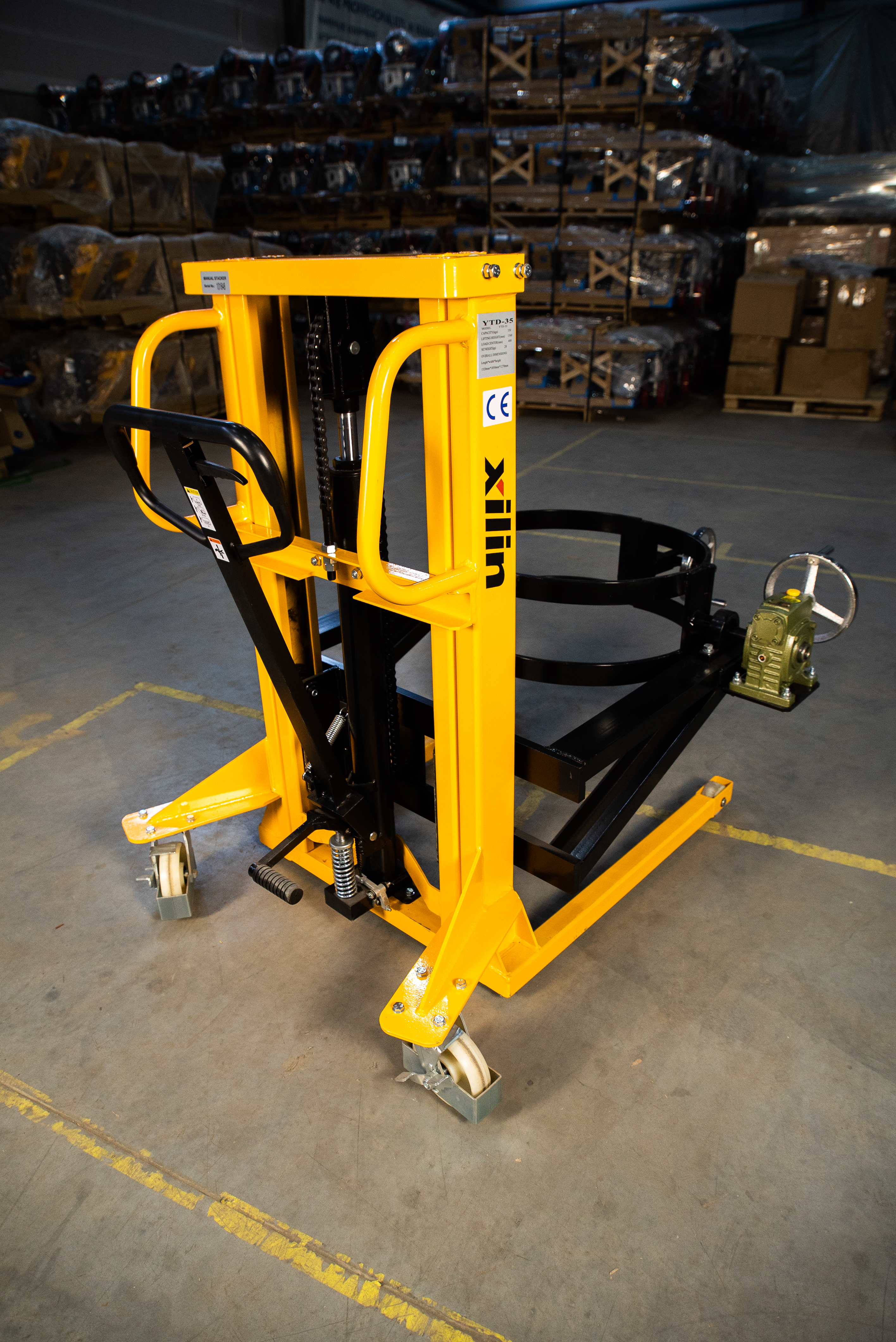 - Штабелер YTD специально разработан для транспортировки, подъема, наклона и переворачивания бочек