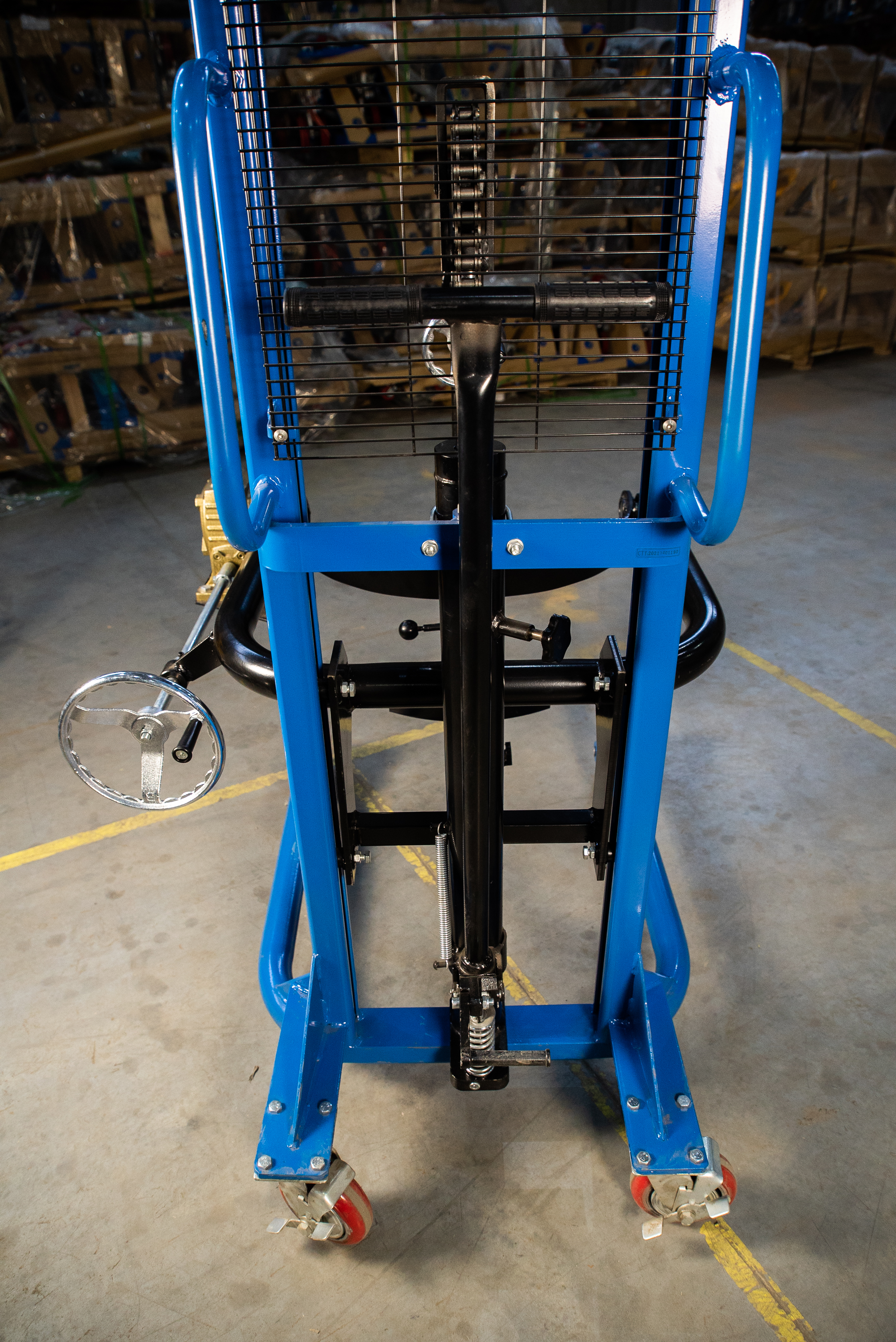 Штабелер бочкокантователь TOR СОТ 0.35Т/2.5М— Специальный штабелер, сделанный для поднятия, перевозки и кантования (наклона, переворота) бочек. Модель оснащена надежным держателем бочек и червячным ручным редуктором для переворота бочки. Штабелер простой в обращении и не прихотлив в обслуживании. Максимальный вес бочки может быть 350 кг, что в принципе покрывает практически все материалы, тарированные в бочки. К минусам данной модели можно отнести лишь то, что бочку брать и ставить мы можем только с ровных площадок: пол, полки. С помощью этого штабелера не получиться работать с бочками с паллет. Высота подъема в 2.5 метра позволяет ставить бочки в 2 яруса.Складская техника производства TOR – это соединение современных разработок и решений, проверенных временем. Так компания добивается качества и простоты использования своего оборудования. В модельном ряду найдутся как экономичные модели, так и модели для интенсивных нагрузок. Штабелер бочкокантователь TOR СОТ 0.35Т/2.5М— Специальный штабелер, сделанный для поднятия, перевозки и кантования (наклона, переворота) бочек. Модель оснащена надежным держателем бочек и червячным ручным редуктором для переворота бочки. Штабелер простой в обращении и не прихотлив в обслуживании. Максимальный вес бочки может быть 350 кг, что в принципе покрывает практически все материалы, тарированные в бочки. К минусам данной модели можно отнести лишь то, что бочку брать и ставить мы можем только с ровных площадок: пол, полки. С помощью этого штабелера не получиться работать с бочками с паллет. Высота подъема в 2.5 метра позволяет ставить бочки в 2 яруса. Особенности штабелера: • Специальное исполнение для кантования бочек • Защитная решетка для защиты оператора от цепей и груза • Надежный гидравлический механизм подъема и кантования. Подробные технические характеристики штабелера можно посмотреть ниже в разделе технические характеристики. При выборе штабелера обращайте внимание на его основные эксплуатационные характеристики, которые важны для вас. Если нужна консультация специалиста, воспользуйтесь удобным для вас способом связи для получения исчерпывающей информации по выбору штабелера.