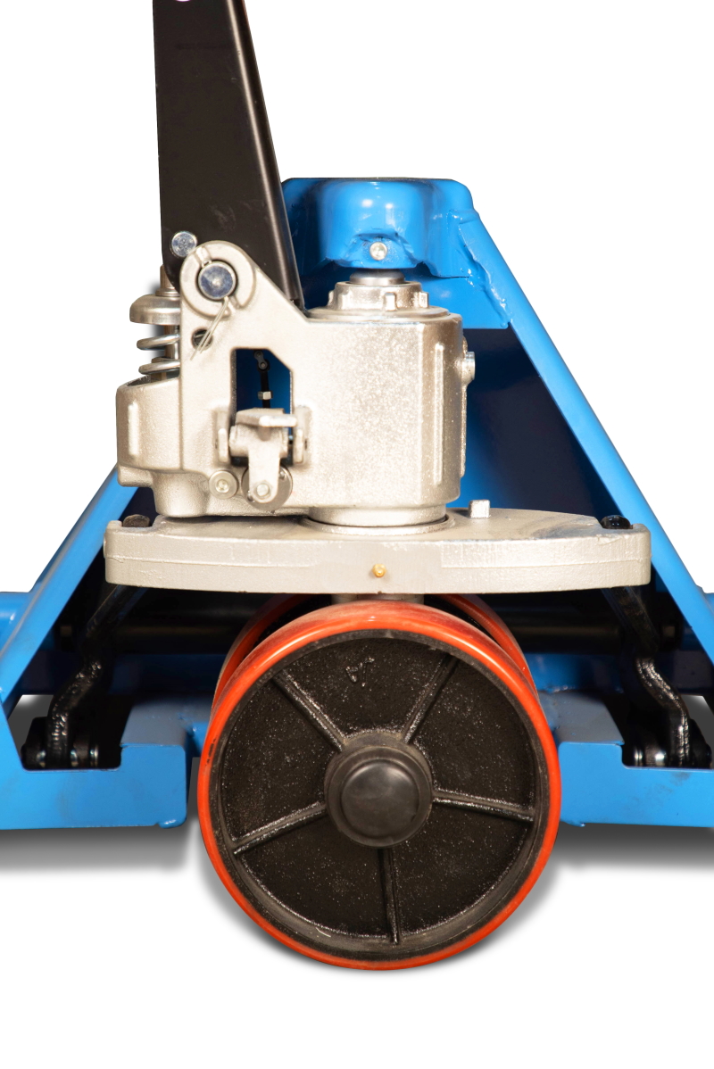 Тележка гидравлическая TOR RHP (BF) - премиальная модель с разборным гидроузлом, укрепленными вилами для интенсивной работы на складах с высоким товарооборотом.