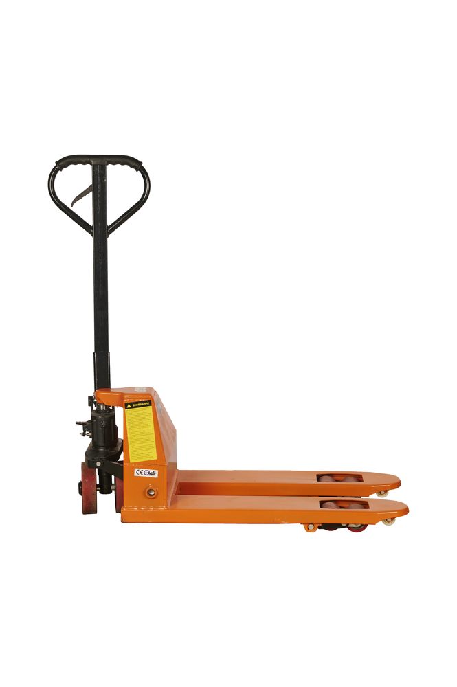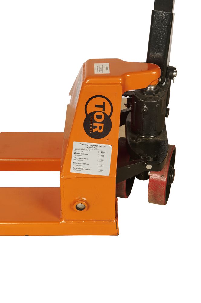 Данная модификация тележки RHP выполняется с укороченными и зауженными вилами. Длина вил составляет 800 мм ширина 450 мм. Тележка предназначена для работы с небольшими паллетами, либо работа по короткой стороне паллеты. Грузоподъемностью 2,5 тонны – для обработки грузов на стандартных евро паллетах. Износостойкие полиуретановые колеса увеличивают срок эксплуатации тележки до замены колес.Гидравлические тележки TOR RHP– это серия очень надежных тележек. Серия специально предназначена для интенсивной работы на предельных нагрузках. Серия состоит из нескольких видов тележек: стандартная под евро паллеты, низкопрофильная, узковильная, длинновильная, коротковильная, увеличенной грузоподъемности, с разными типами колес. Хотите купить качественную рохлю и просто работать, не думая о ремонте – серия RHP для вас. При соблюдении правил эксплуатации тележка RHP прослужит очень долго. Гарантия на них 1 год + 1 год бесплатного сервисного обслуживания. Данная модификация тележки RHP выполняется с укороченными и зауженными вилами. Длина вил составляет 800 мм ширина 450 мм. Тележка предназначена для работы с небольшими паллетами, либо работа по короткой стороне паллеты. Грузоподъемностью 2,5 тонны – для обработки грузов на стандартных евро паллетах. Износостойкие полиуретановые колеса увеличивают срок эксплуатации тележки до замены колес. Подробные технические характеристики тележки можно посмотреть ниже в разделе технические характеристики. При выборе гидравлической тележки обращайте внимание на ее основные эксплуатационные характеристики, которые важны для вас. Если нужна консультация специалиста, воспользуйтесь удобным для вас способом связи для получения исчерпывающей информации по выбору тележки.