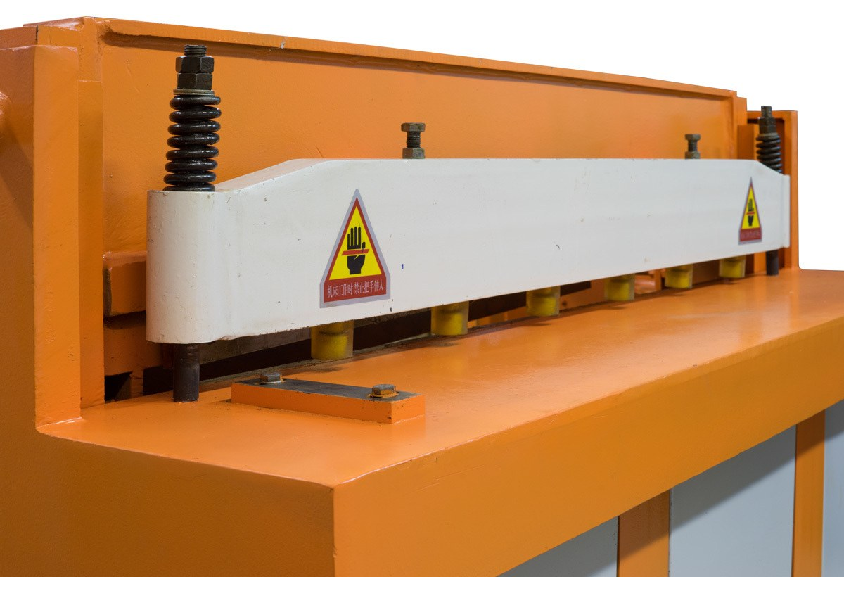 Для удержания материала во время реза, гильотины Stalex SBJB имеют автоматический прижим для фиксации заготовки, который снижает эффект вытягивания материала из под ножа и рез получается ровнее.