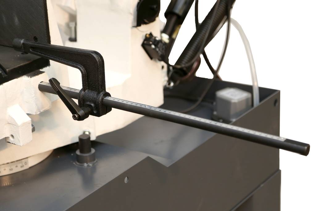 Боковой упор позволяет быстро выставить заготовку на нужный размер и получать детали с высокой степенью повторяемости.