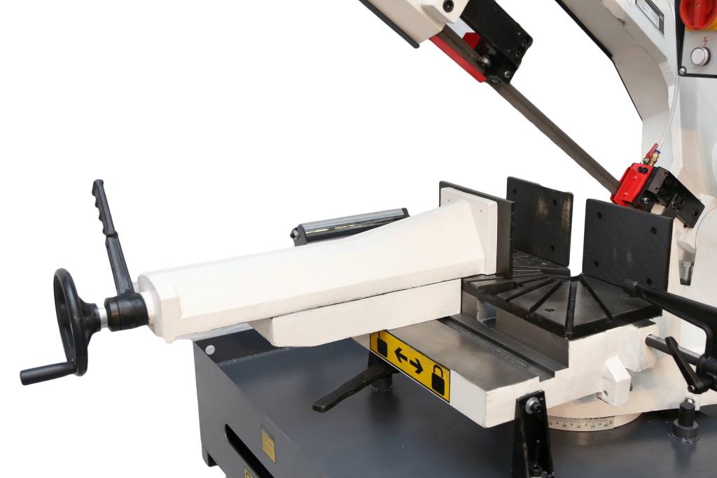 - Основание станка изготовлено из чугуна, что обеспечивает необходимую жесткость конструкции, а также позволяет гасить часть вибраций, которые неизбежно возникают в процессе работы ленточной пилы.