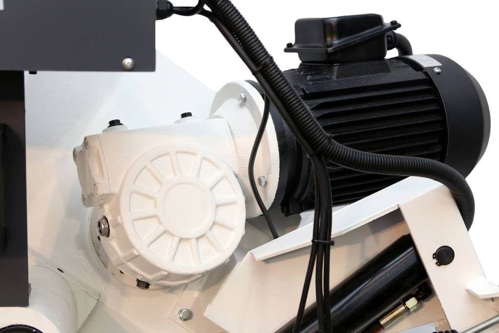 - Привод осуществляется мотор-редуктором с асинхронным двухскоростным двигателем мощностью 1,5 кВт. Он позволяет реализовать две скорости резания 34 м/мин (для резки металлопроката различного типоразмера) и 68 м/мин (для резки пластмасс, тонкостенных металлических профилей и т.д.).