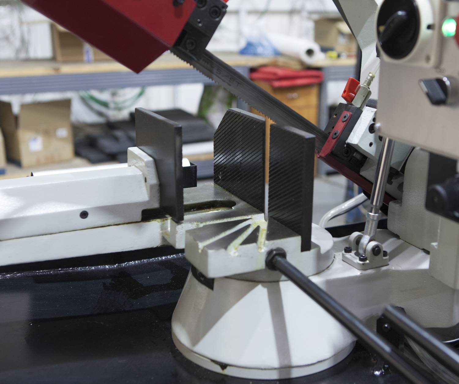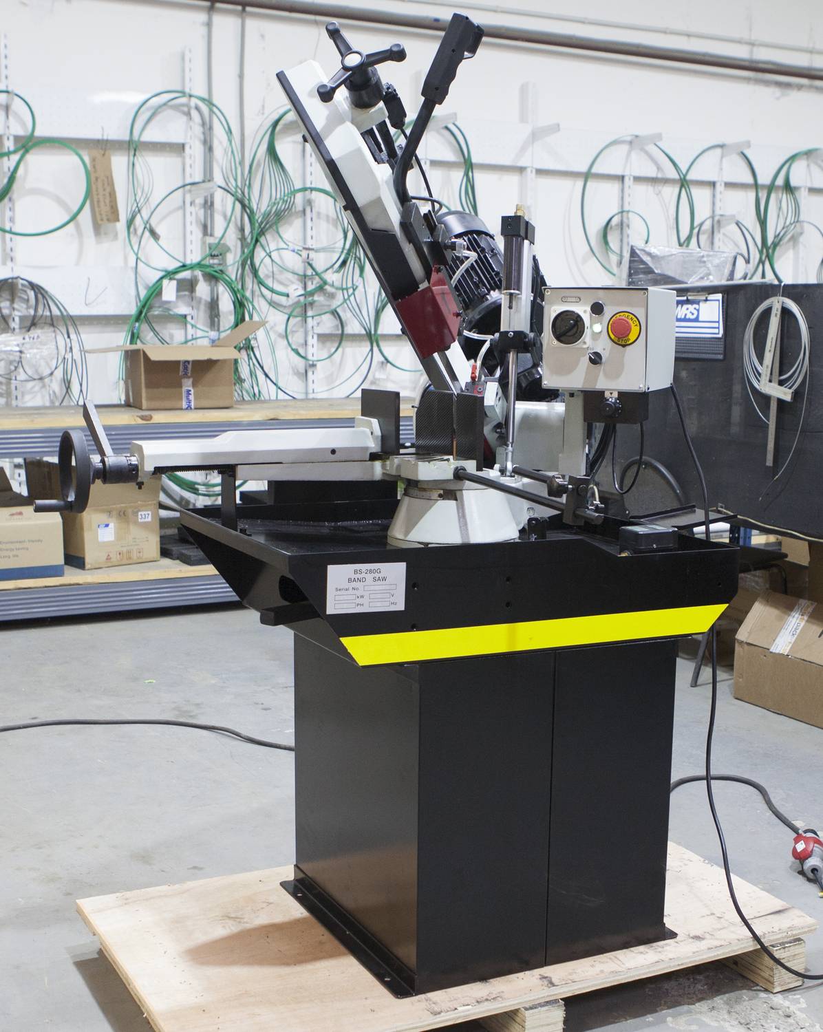 Используя данную модель имеющую быстро регулируемые тиски для резки под углом, поворачивается рама, а не заготовка. Тиски с системой быстрого отвода ускоряют процесс смены заготовки (ускоренный отвод подвижной губки происходит без вращения маховика). Зажим заготовки осуществляется тисками вручную, подача заготовки - также вручную. Наличие система СОЖ в стандартной комплектации – позволяет добиться высокой производительности. Кроме того в модели Stalex BS-280G вынесен на приборную панель – инвентор опускания рамы.