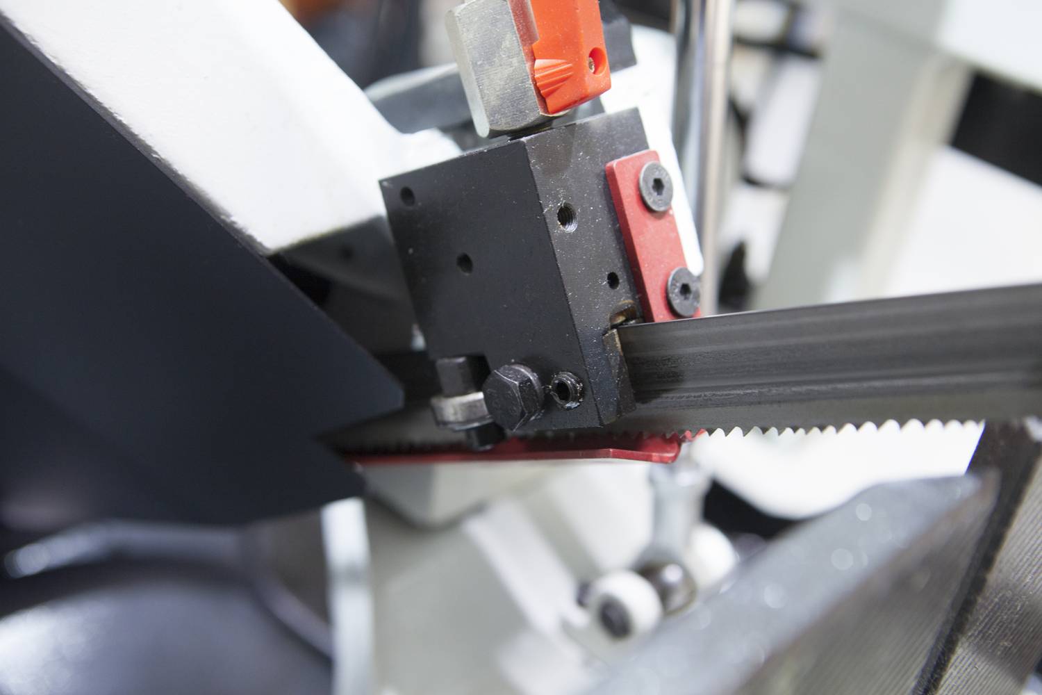 Режущий инструмент – бесконечная сварная ленточная пила. Полотно натягивается с помощью натяжного шкива. Натяжной шкив приводится в движение приводным шкивом, который в свою очередь, приводится через редуктор.