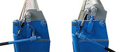 Подъем прижимной баки осуществляется за счет движения эксцентрика, что обеспечивает высокую скорость подъема балки и высокую производительность станка. Сила прижима заготовки удобно и просто регулируется. Раскрытие балки осуществляется ее поворотом вокруг горизонтальной оси.