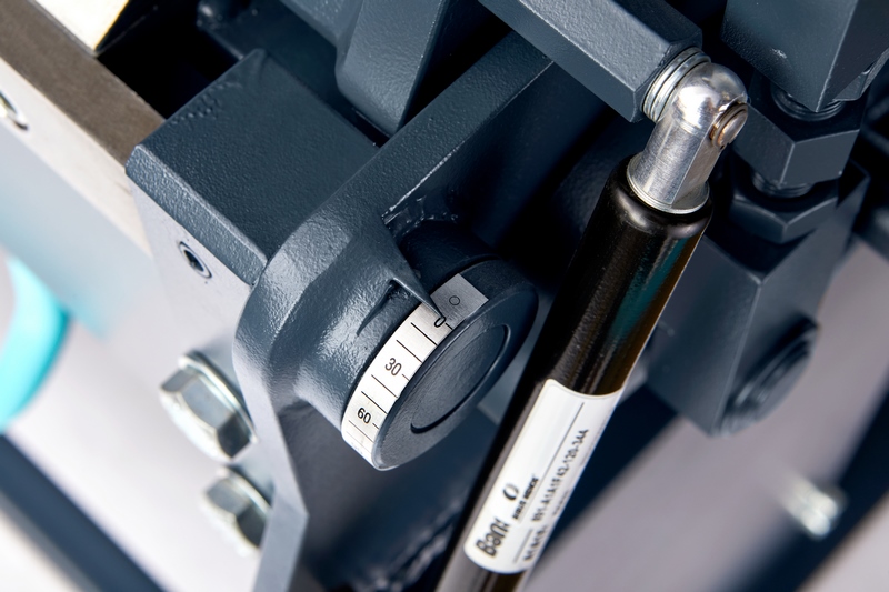 Гибочная балки снабжена угломером. Это позволяет производить изделия с точно заданным углом гиба. Входящий в комплект станка ограничитель поворота гибочной балки обеспечит высокую воспроизводимость угла гиба и облегчит изготовление большого количества одинаковых изделий.