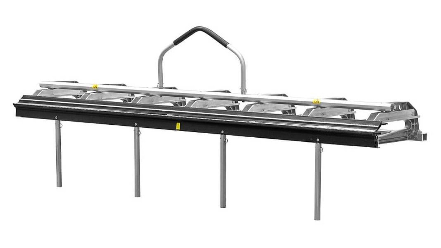 Изготовлена из усиленного алюминиевого профиля. В конструкции предусмотрен «рельс» для роликового ножа и установки угломеров. Кромка планки имеет радиус всего 2мм и дополнительно защищена от повреждения стальным уголком.