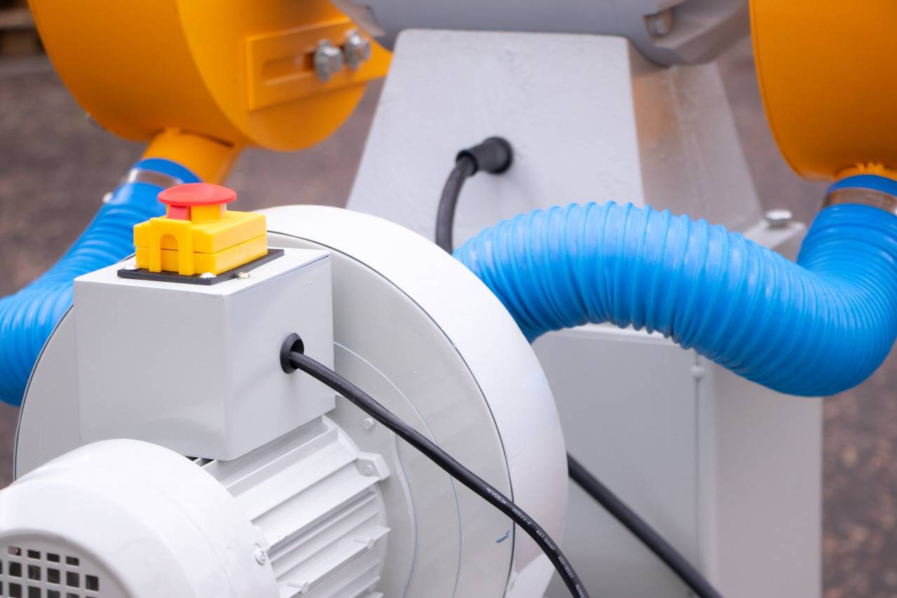 Стационарный двухдисковый обдирочно-шлифовальный станок на подставке со встроенным пылесосом. Предназначен как для заточки режущего инструмента, так и для обдирочных работ. Мощная конструкция и трёхфазный электродвигатель предусматривают использование на промышленном, крупносерийном производстве. Наличие встроенного пылесоса улучшает экологичность оборудования, увеличивает срок его службы и облегчает обслуживание. Защитные экраны обеспечивают безопасность при работе на станке. Удобным дополнением является фронтально расположенная ёмкость для охлаждающей жидкости.