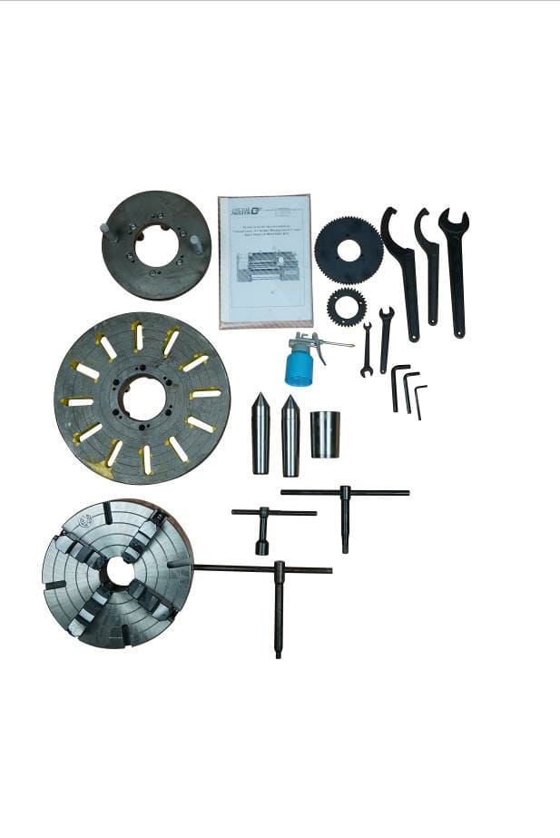 В ЗИП входят ключи, масленка, 4-х кулачковый патрон 320 мм с независимыми кулачками, неподвижный центр МТ №5, конус-переходник, планшайба, набор ключей и руководство пользователя.