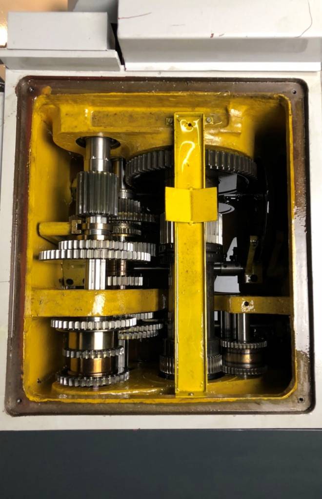 Под защитной крышкой шпиндельной бабки расположены приводные шкивы и гитара зубчатых колес.