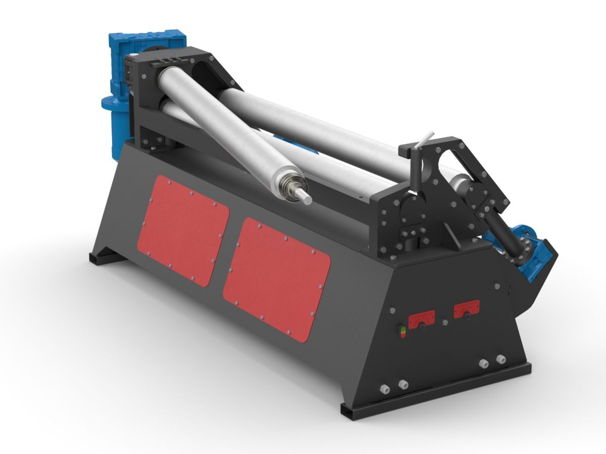 Асимметричные вальцовочные станки имеют особое расположение валов, при котором боковой вал двигается по диагонали по отношению к верхнему и нижнему валу. Такая схема позволяет исключить прямые участки на прокатываемой обечайке. Боковым валом задаётся нужный радиус прокатываемой детали.