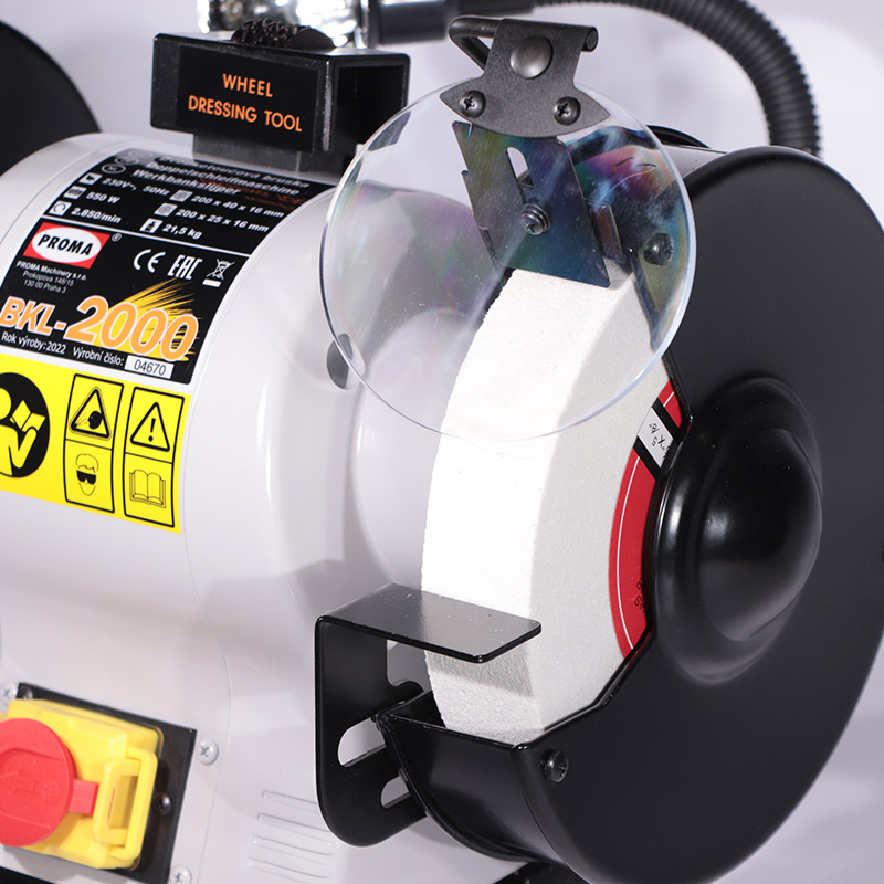 Безопасность Защитные экраны двухстороннего заточного станка с подсветкой Proma BKL-2000 25450200 исключают вылетание мелких частиц в оператора. |